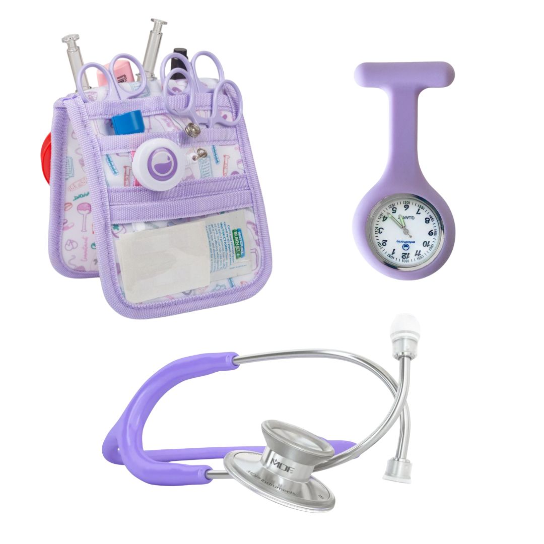 Vantaggi: Attrezzatura medica lilla coordinata | Massima Igiene in reparto | Regalo ideale per professionisti | Set medico completo.