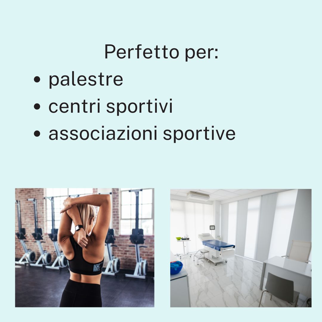 • Palestre, Centri Sportivi, associazioni sportive (ASD): Per la tutela di atleti, istruttori e frequentatori durante l'attività fisica.