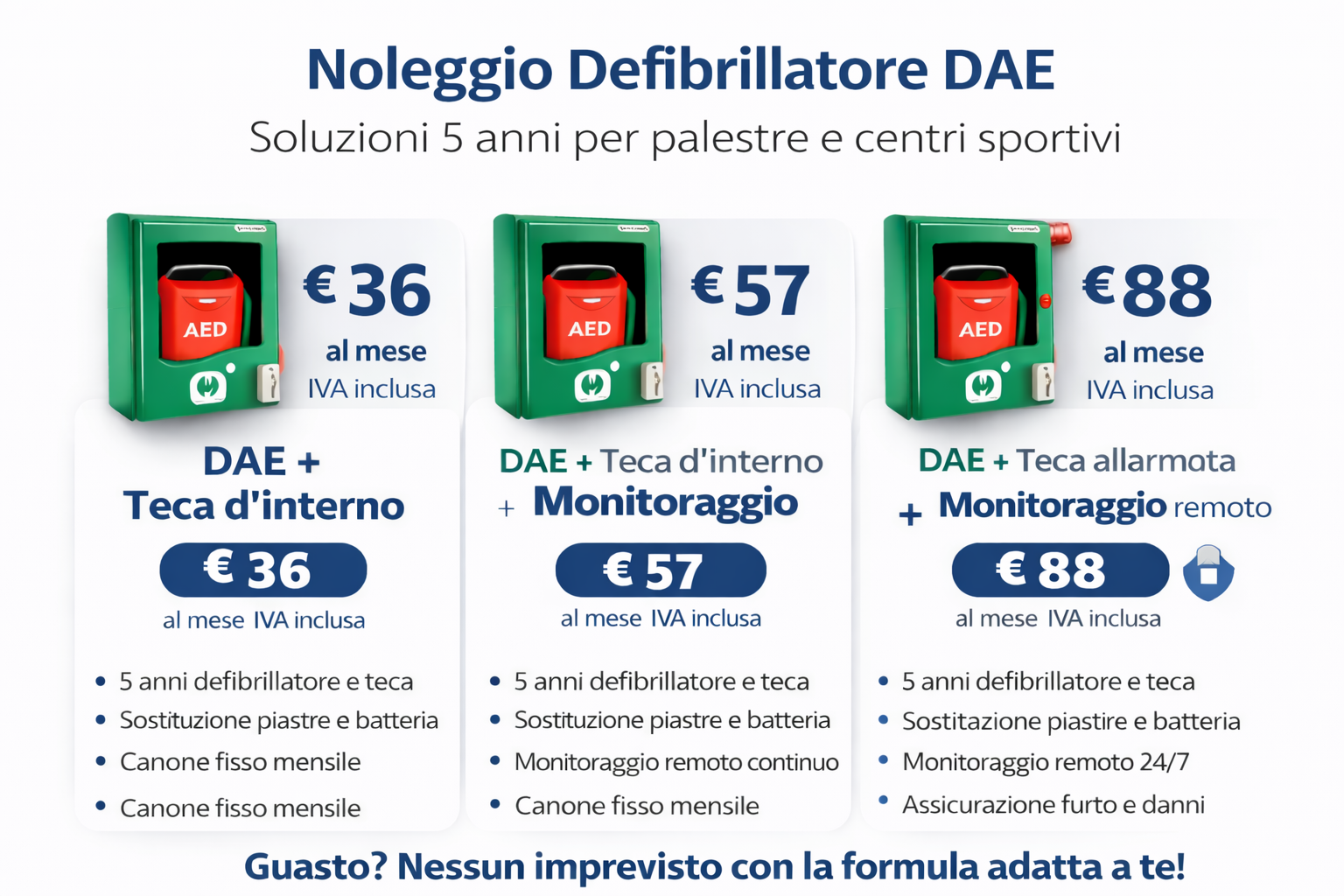 • € 57 / mese DAE + teca + monitoraggio remoto 24/7