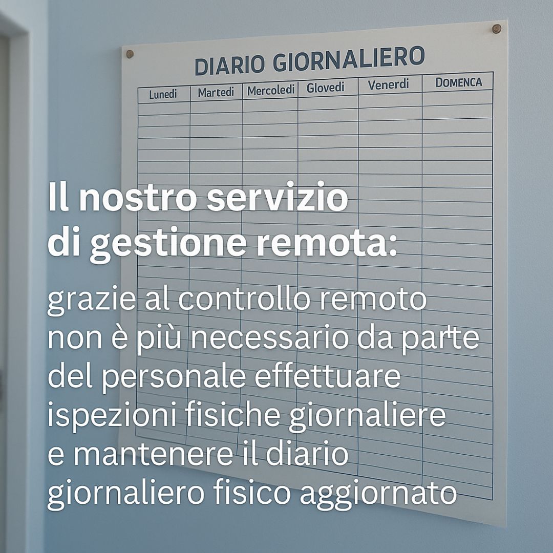 • Eliminazione del Diario Giornaliero: Grazie al controllo elettronico, non è più necessario assegnare al personale l'onere e la responsabilità di ispezioni fisiche quotidiane e del mantenimento del registro (Diario Giornaliero).